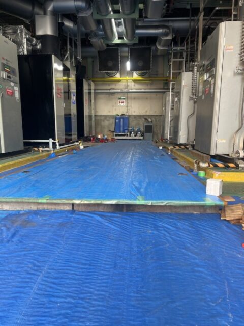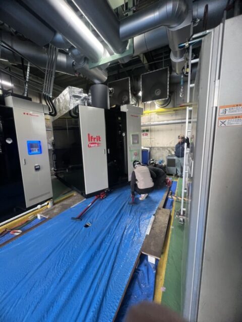 2024年初工事は三重県鈴鹿市の工場でボイラの新規据付工事を行いました。 去年、別工場に仮置きしていたボイラを10tのフォークリフトで横持ちしてボイラー室に搬入するのですが、設置場所までに溝や段差があったため、ステージを作りレベルを合わせて搬入しました。 高さや幅など狭いところで5ミリほどしか無い厳しい条件でしたが無事搬入して、芯出し、レベル調整、アンカー施行を行い据付完了しました。 ボイラに付帯するダクト、足場なども請負っているので最後まで気を抜かず無事故で頑張ります! Tweet 重量物・機械器具の設置は三重県亀山市の山将工業へ|求人 山将工業 〒519-0215 三重県亀山市太森町1371番地 TEL:090-6806-0627 FAX:0595-82-8282 ※営業電話お断り 2024年1月10日(水) 12:05 | カテゴリー:お知らせ