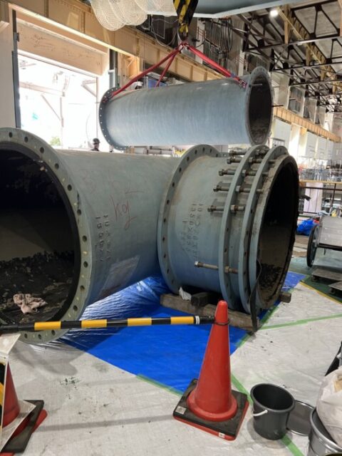 ポンプ周りの架台、配管などを撤去して、明日からポンプ本体の解体作業になります。総重量19tの重量物になるので安全かつ円滑に作業が進むように完璧な段取りで臨みたいと思います。
