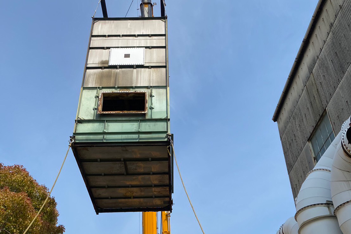 スクラバーとは排ガス処理装置のことです。各種設備はデリケートなものが多いため、作業は常に慎重を期して進めます。